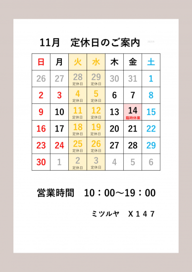 【定休日のご案内】